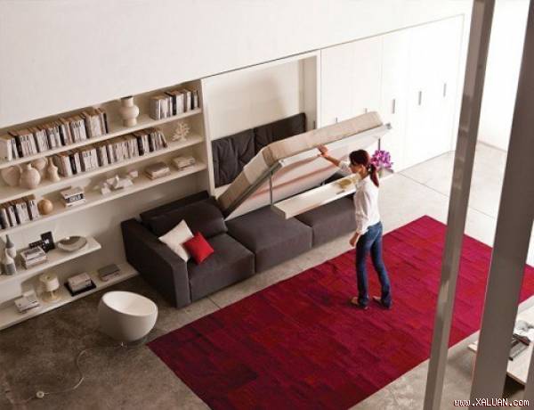 Nếu bạn muốn phòng khách cũng là nơi ngủ nghỉ hay chỗ làm việc rộng rãi hơn, bạn nên sắm một chiếc giường tiết kiệm diện tích.